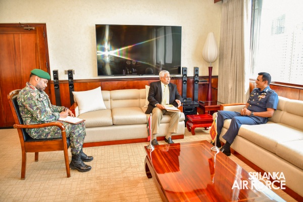 The High Commissioner for Republic of Maldives in Sri Lanka, His Excellency Ali Faiz called on the Commander of the Air Force, Air Marshal Udeni Rajapaksa at the Air Force Headquarters today (23 August 2023).