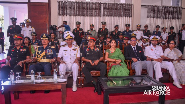 A floral tribute commenced the event, as Air Marshal Udeni Rajapaksa paid his respects at the War Heroes' Monument that is a testament to the courageous KDU alumni from the Tri-Forces who made the ultimate sacrifice for the nation. Following this commemorative gesture, the Commander revisited his military alma mater, Kotelawala Defence University, engaging in a productive meeting with the Vice Chancellor, Major General Milinda Peiris,. This interaction culminated in the exchange of commemorative plaques, signifying the significance of the occasion.
