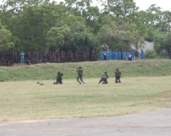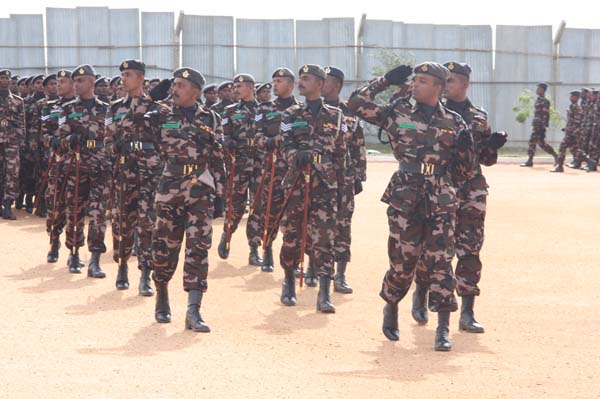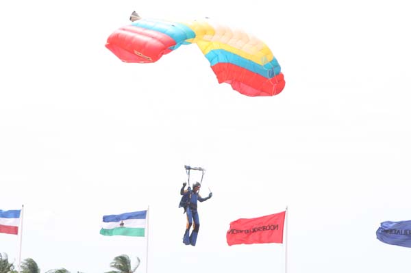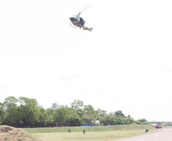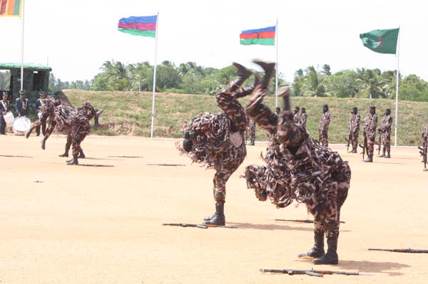 The personnel passing out also displayed their newly learnt skills on foot drill, un-armed combat and bayonet assault. In addition a Heli-Rappelling demonstration by the Regiment Special Forces and Sky-Diving display by the Parachute Training School made the event more colorful.