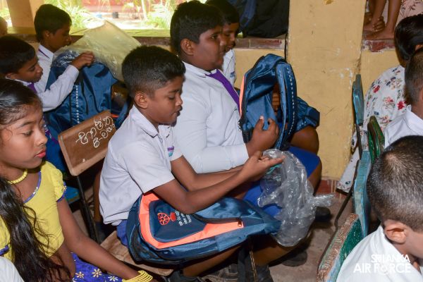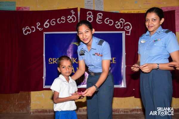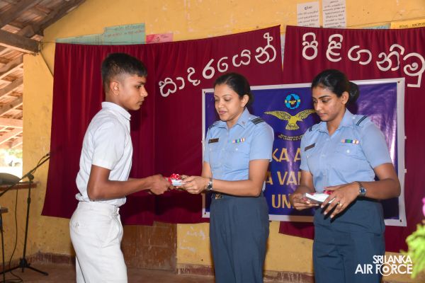 The event was attended by Base Commander SLAF Base Vavuniya, Group Captain Poojana Gunathilake, Secretary Seva Vanitha Unit, Squadron Leader Viludani Yatawara and members of the Air Force Seva Vanitha Unit, as well as the Officer in Charge and members of SLAF Base Vavuniya Seva Vanitha Unit, the school principal, teachers and students.