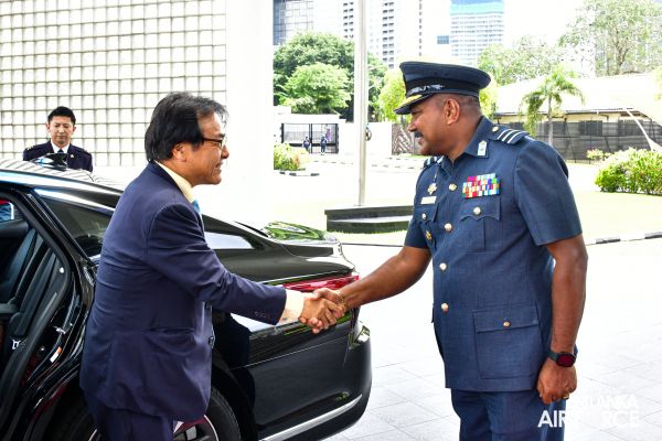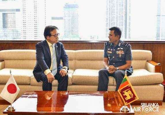 The Ambassador of Japan to Sri Lanka, His Excellency Mizukoshi Hideaki, called on the Commander of the Air Force, Air Marshal Udeni Rajapaksa at the Air Force Headquarters today (08 September 2023).