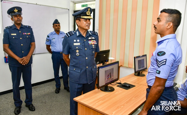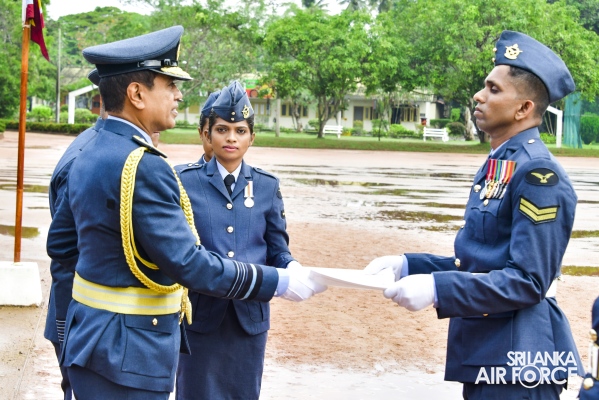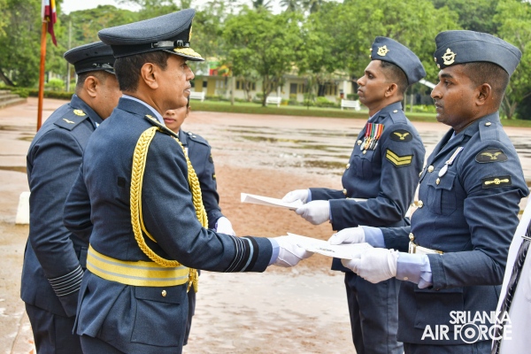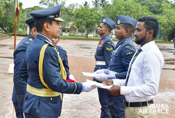 The Commander reviewed the Commander's Inspection Parade, which was commanded by the Commanding Officer of SLAF Trade Training School Ekala, who is also the Director Trade Training of SLAF, Group Captain Uditha Piyasena. During the parade, Certificates of Commendation were awarded to the following two Junior Non-Commissioned Officer, airman and a civilian staff member in recognition of their outstanding performance.