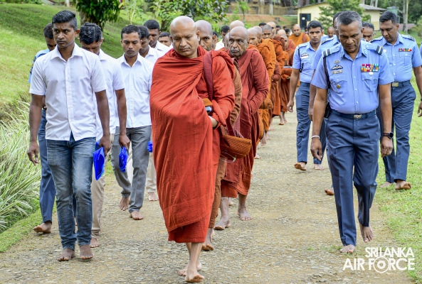 SLAF Combat Training School in Diyatalawa facilitated a meaningful event known as the "Pindapatha Charika," deeply rooted in traditional Buddhist practice, on 15 September 2023. The monks proceeded on a peaceful and meditative walk, retracing the footsteps of ancient Buddhist traditions and bestowing their blessings upon the School and its community.