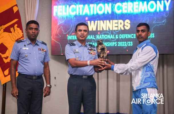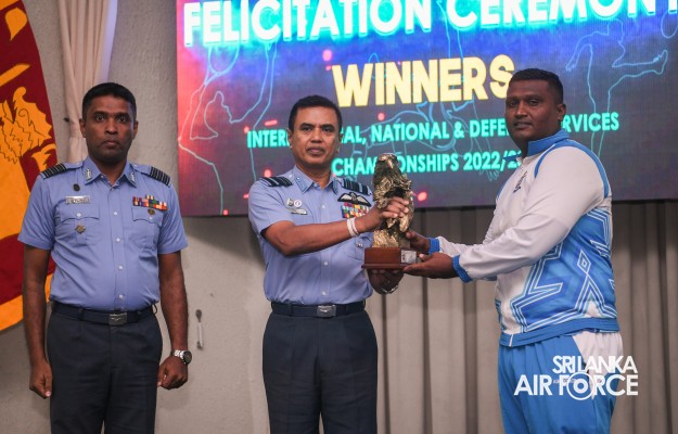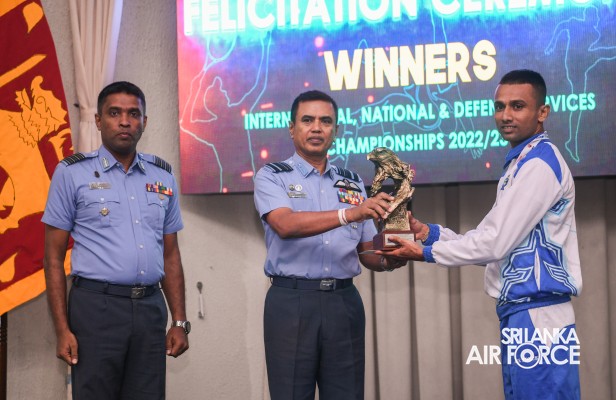 Air Marshal Udeni Rajapaksa, the Commander of the Air Force, in his capacity as the President of the Air Force Sports Council (AFSC), graced a special felicitation ceremony held this morning (20 September 2023), at Air Force Headquarters. The ceremony honoured sportsmen and women from the SLAF who excel in various disciplines including Athletics, Archery, Tennis, Handball, Hockey, Golf, Triathlon, Water polo, Boxing, Weightlifting, Basketball and Rugby. These individuals have demonstrated outstanding performance at both national and international sports championships. In addition, individuals who have achieved excellence at the national and international levels were recognized and rewarded by the President of the Air Force Sports Council.
