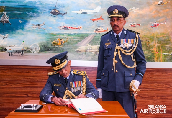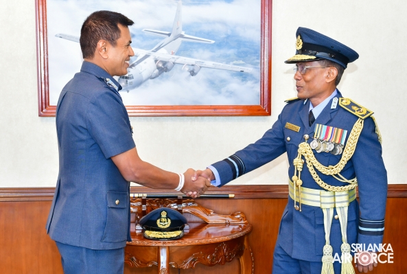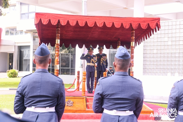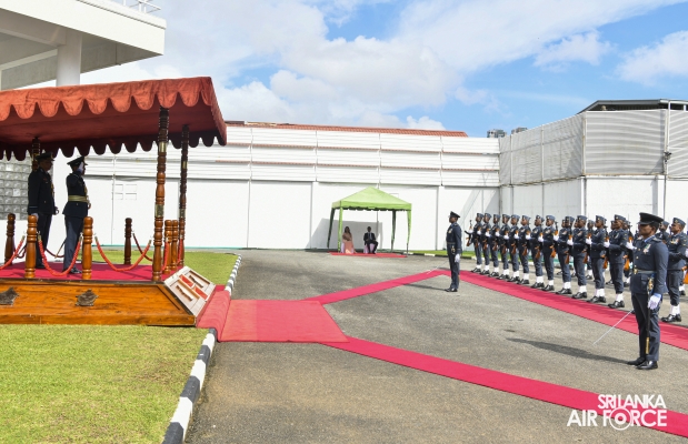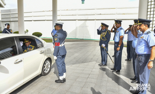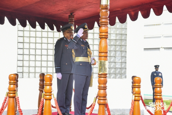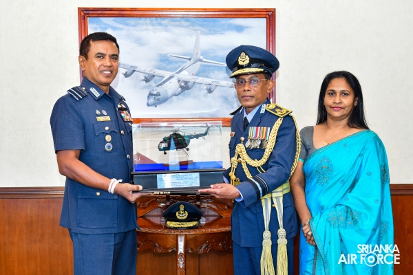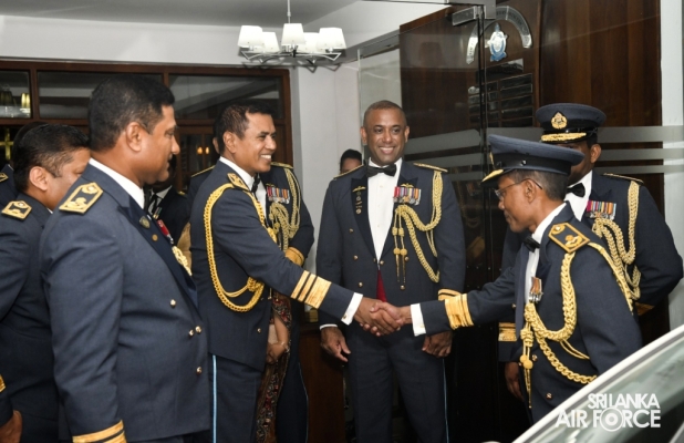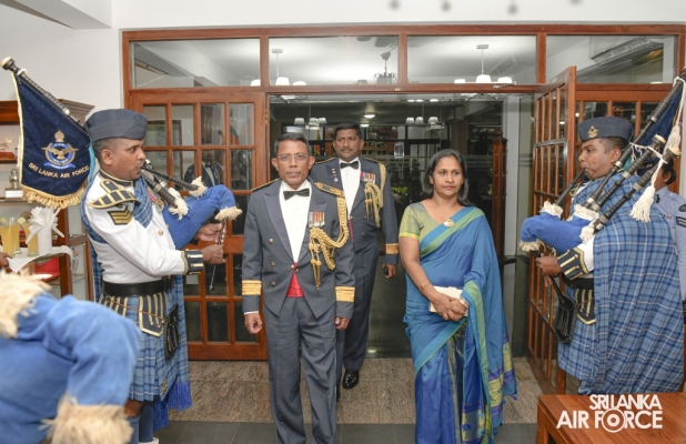 Air Vice Marshal Samarasinghe made an official farewell call on the Commander of the Air Force, Air Marshal Udeni Rajapaksa, at his office today. The Commander commended him for his dedicated service rendered to the nation and to the Sri Lanka Air Force in particular. The Commander also emphasized that he was one of the key stakeholders during times of need for our motherland, and that his heroic history will remain etched in the annals of the SLAF. The Commander and Air Vice Marshal Samarasinghe exchanged mementos to mark the occasion. Afterward, he was accorded a Ceremonial Guard of Honour by the SLAF Colour Wing before departing from Air Force Headquarters for the last time. In recognition of the outstanding service rendered to the nation, a Farewell Dinner was graciously hosted in honour of Air Vice Marshal Samarasinghe with the presence of the Commander of the Air Force, Air Marshal Udeni Rajapaksa, along with Chairperson SLAF Seva Vanitha Unit, Mrs. Enoka Rajapaksa and the members of the Air Force Board of Management. This momentous occasion took place at the Air Force Headquarters Officers' Mess in Colombo.