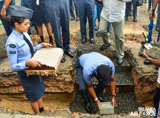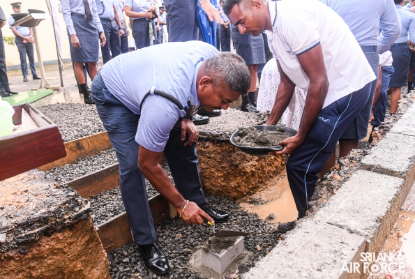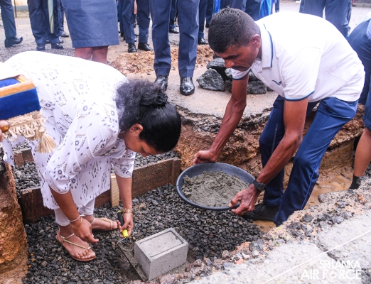 A significant milestone was reached as the foundation stone for the Guwanpura Day Care Centre was ceremoniously laid today (01 October 2023) in line with World Children's Day. This momentous occasion was graced by the presence of the Commander of the Air Force, Air Marshal Udeni Rajapaksa and the Chairperson SLAF Seva Vanitha Unit, Mrs. Enoka Rajapaksa.