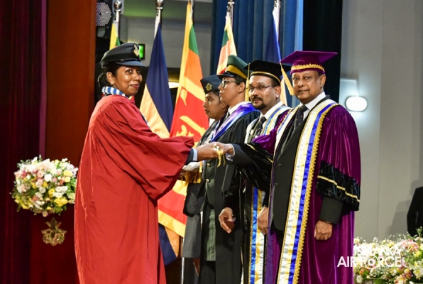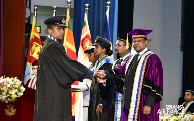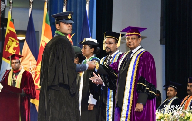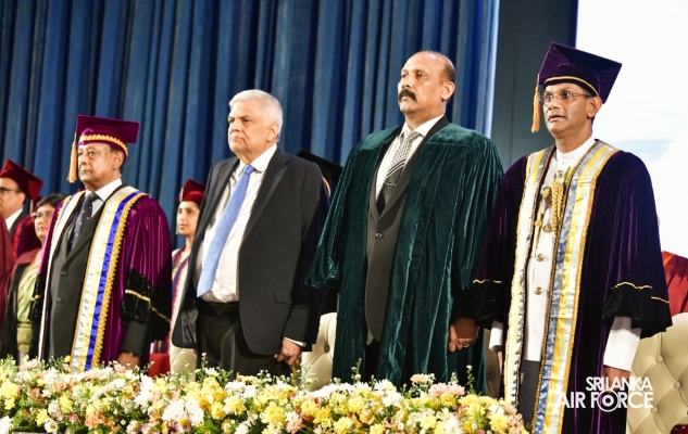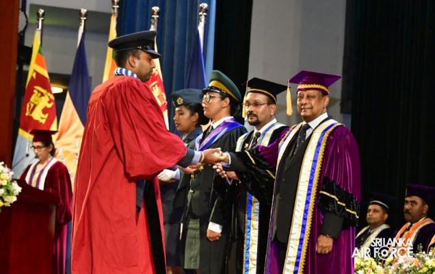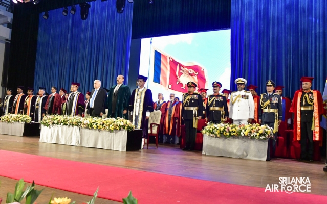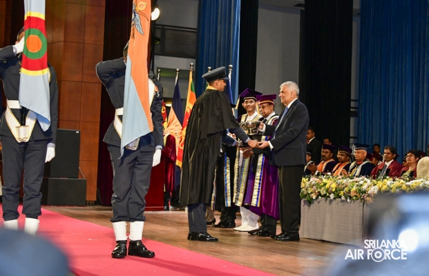 The 34th General Convocation of General Sir John Kotelawala Defence University was concluded at the BMICH yesterday (04 October 2023). The President of the Democratic Socialist Republic of Sri Lanka and the Commander in Chief of the Armed Forces, Honourable Ranil Wickramasinghe graced the convocation as the Chief Guest. 47 SLAF Master Graduate and Postgraduate Diploma holders and 96 SLAF Bachelor’s Degree holders from different faculties of the University received parchments at this year’s General Convocation.