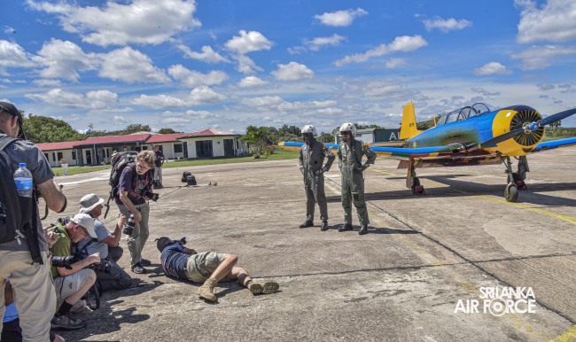 During their brief stay in the country, they visited the Flying formations at SLAF Academy China Bay, Base Hingurakgoda, Base Ratmalana, and Base Katunayake to document these activities through their photography. Additionally, their visit concluded with a productive discussion with the Commander of the Air Force, Air Marshal Udeni Rajapaksha at Air Force Headquarters.