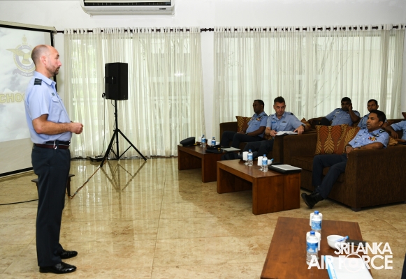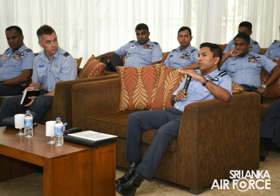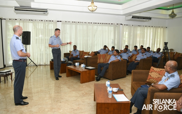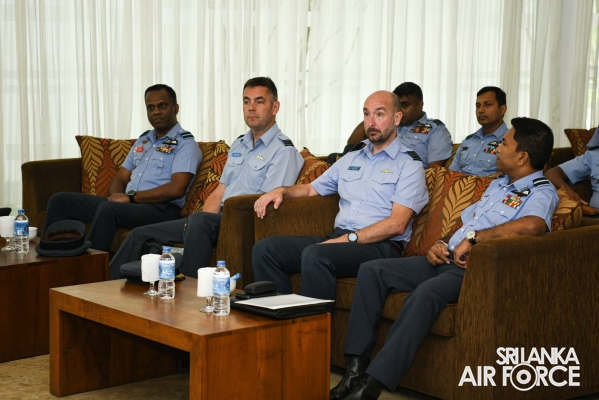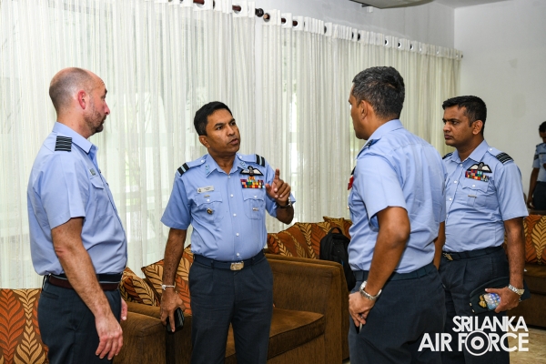 A delegation led by Group Captain Mike Jordan, Commandant of the Central Flying School Royal Air Force - UK and Commanding Officer of the Multi-Engine Examiner Squadron, Squadron Leader Simon Dacher, engaged in a comprehensive discussion with Sri Lanka Air Force Flying Instructors on today (12 October 2023). This event took place at the SLAF Base Ratmalana Officer's Mess premises. The discourse encompassed significant subjects, namely, Instruction and Standardization, Supervision and Air Safety and Risk Management.