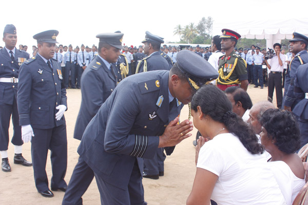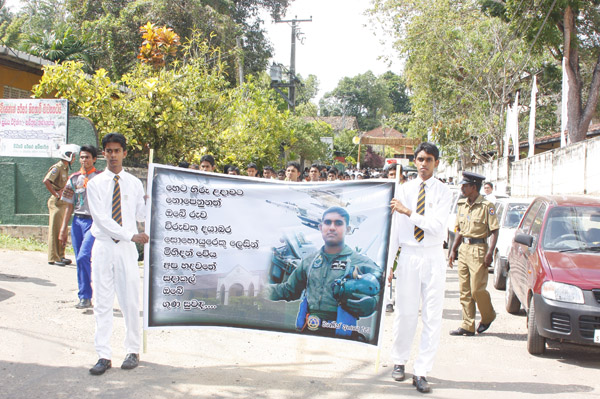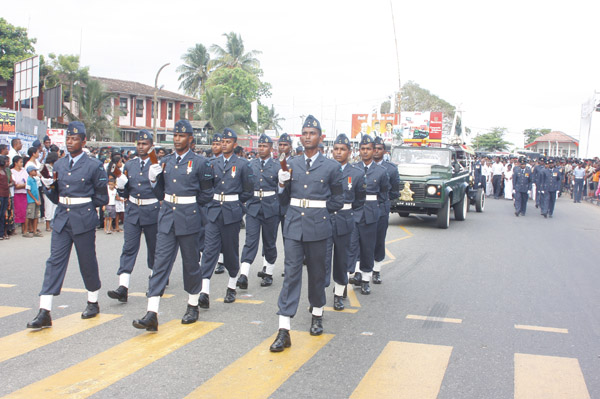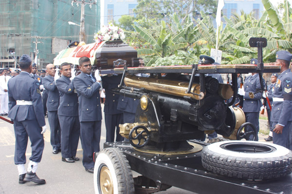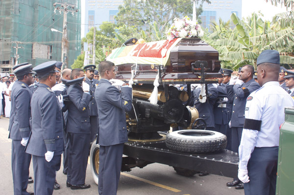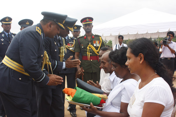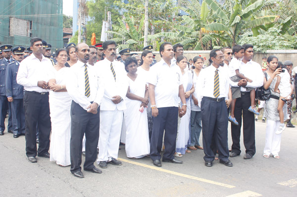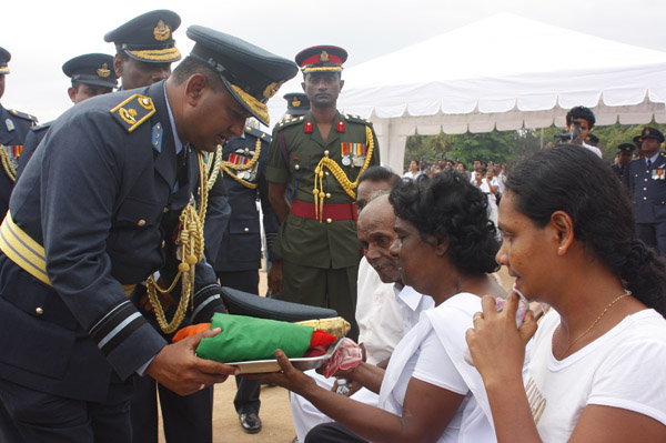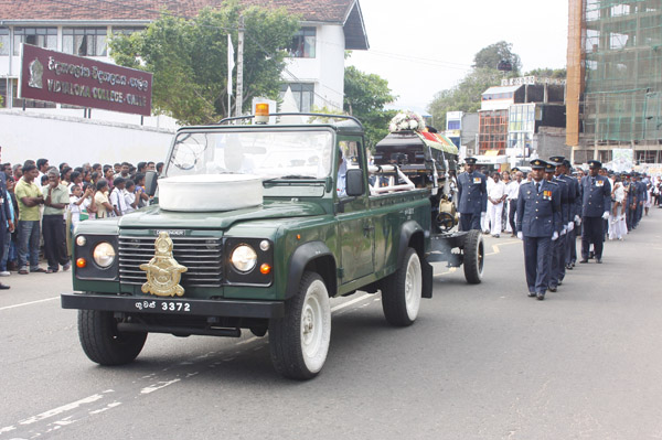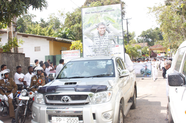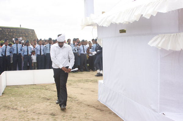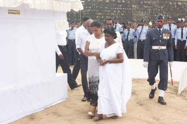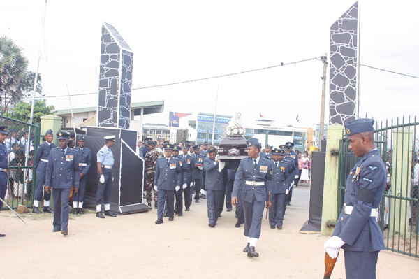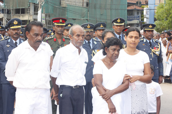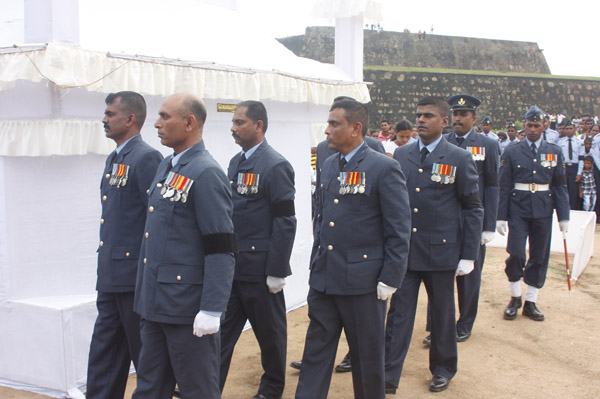 The cortege left the late pilot’s residence at Kitulampitiya Road and was handed over to the Sri Lanka Air Force near the Galle Public Library at 3pm. The mortal remains of Squadron Leader Monath Perera was cremated with full Air Force honours at the Samanala grounds in Galle.
