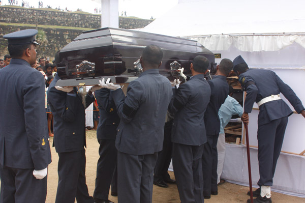 The funeral of Squadron Leader Monath Perera was held this evening, 5 March,2011 at the Samanala Grounds, Galle.