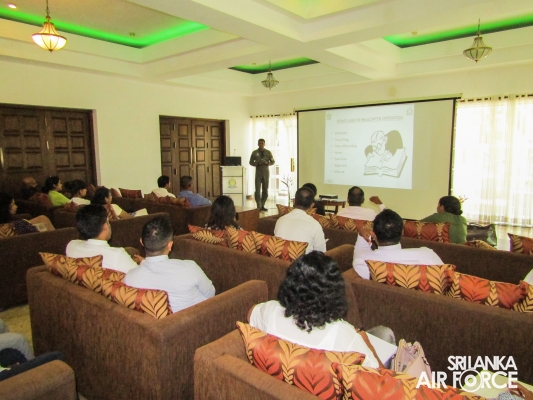 The training course was instructed by Gp Capt (Dr) Sujeewa Alwis, Commanding Officer, SLAF Hospital Colombo and SLAF doctors, Wg Cdr (Dr) Shiran Rajakauruna, Wg Cdr (Dr) Sariru Madurawala, Sqn Ldr (Dr) Kalpa Bandara and the QHI Sqn Ldr Ishan Silva.