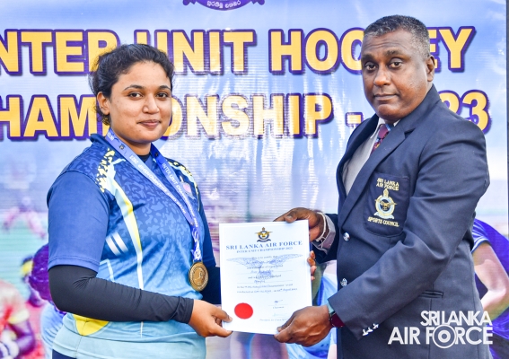 The Inter Unit Hockey Championship 2023 was concluded at SLAF Trade Training School Ekala today (20 October 2023). The finals and Awards Ceremony were held at the same venue with the graceful presence by The Director General Welfare, Air Vice Marshal Suharshie Fernando as the Chief Guest.