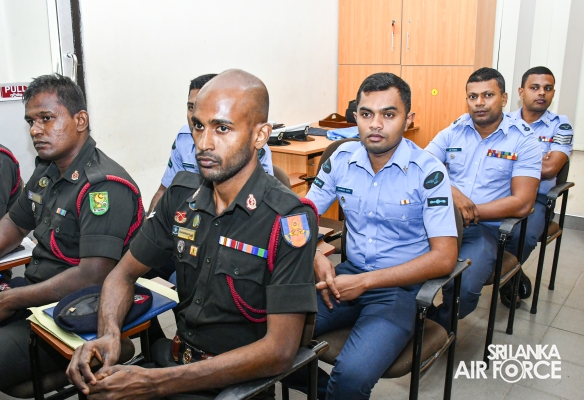 The Directorate of Health Services has commenced the Diploma in Physiotherapy programme for nursing assistants of tri-services in Sri Lanka. The inauguration ceremony was held at the auditorium of SLAF Base Hospital Katunayake yesterday (23 October 2023). The opening ceremony of the programme was graced by Director General Health Services AVM (Dr) Lalith Jayaweera, Director Special Training Air Commodore Anurudda Wijesiriwardana, Deputy Base Commander Group Captain Ashad Liyanarachchige and Commanding Officer of SLAF Hospital Katunayake Air Commodore (Dr) Vasantha Padmaperruma.