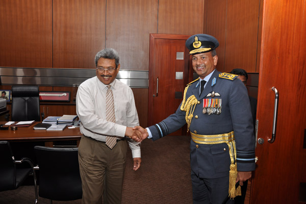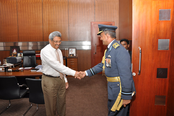 Commander of the Air Force, Air Marshal Harsha Abeywickrama paid a courtesy visit to Secretary to the Ministry of Defence, Hon. Gotabhaya Rajapaksa on 28 February, 2011.