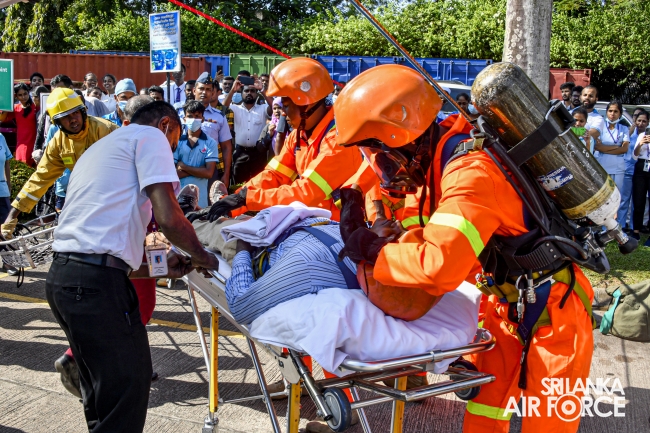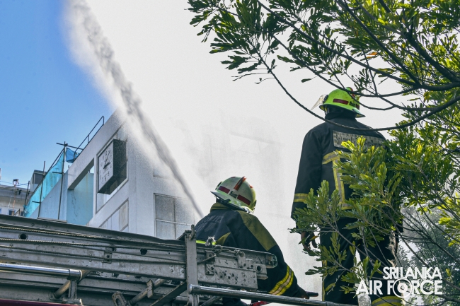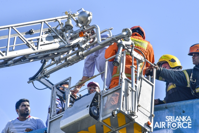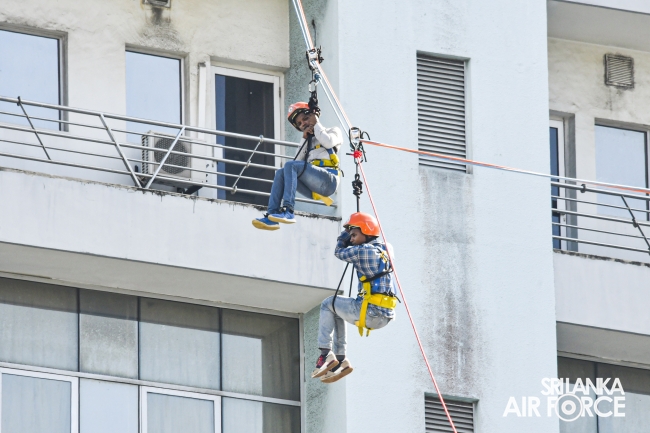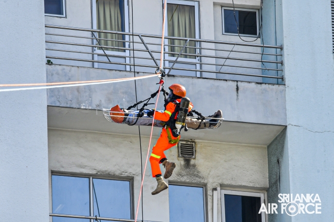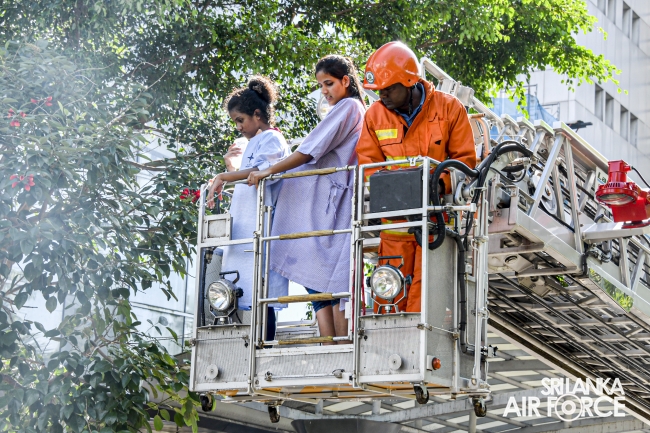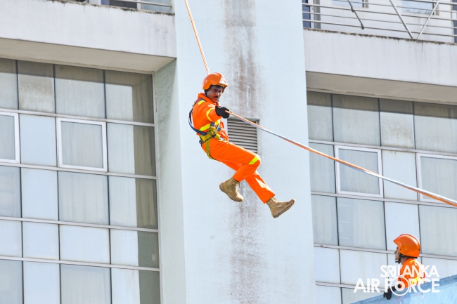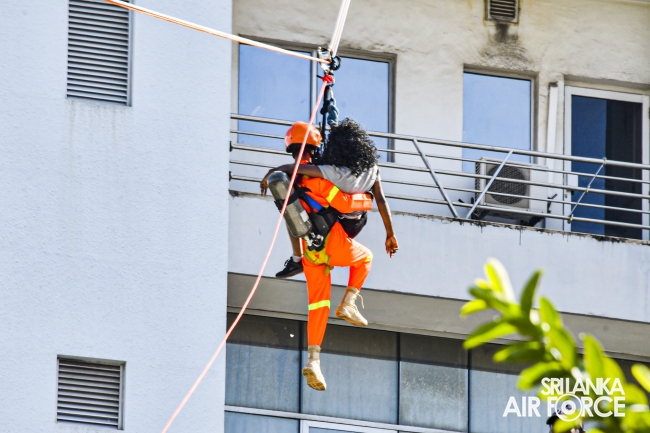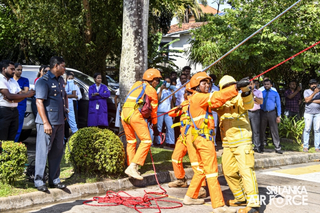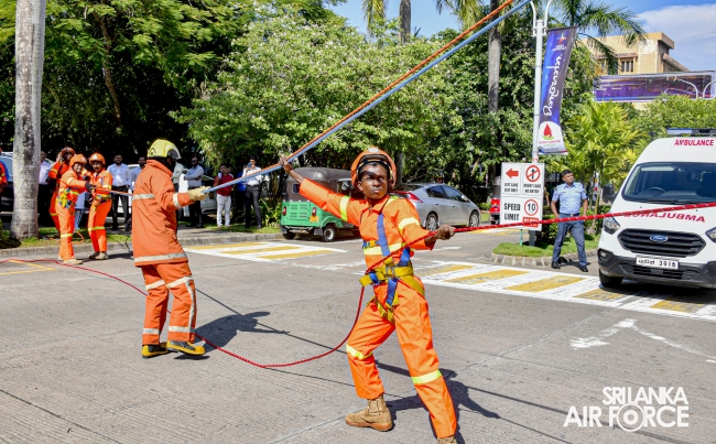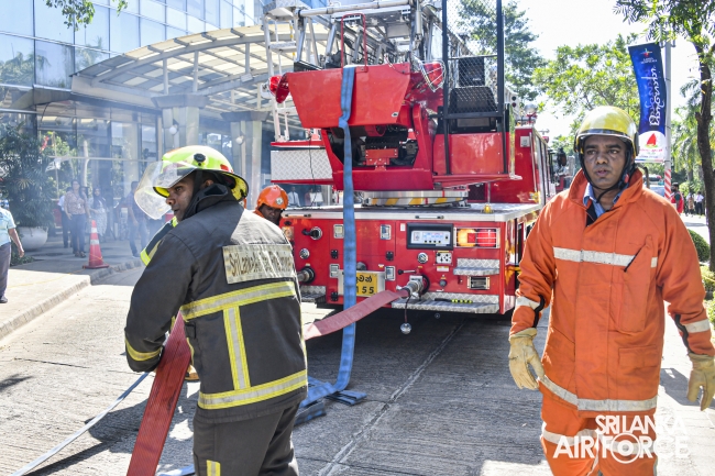 The SLAF Fire fighters demonstrated several rescue tactics such as using rope rappelling and showed their firefighting and Breathing Apparatus response capabilities.