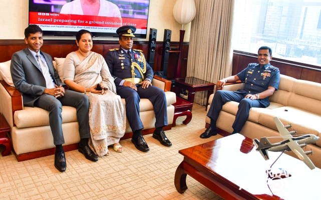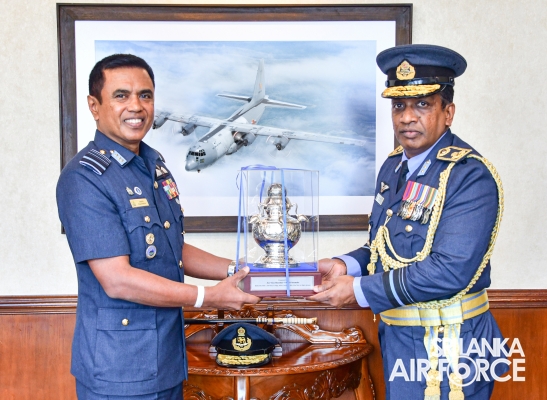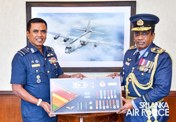 Air Vice Marshal Fernando made an official farewell call on the Commander of the Air Force, Air Marshal Udeni Rajapaksa, at his office, yesterday (26 October 2023). The Commander commended him for his dedicated service rendered to the nation and to the Sri Lanka Air Force in particular. The Commander also emphasized that he was one of the key stakeholders during times of need for our motherland and that his heroic history will remain etched in the annals of the SLAF. The Commander and Air Vice Marshal Fernando exchanged mementos to mark the occasion.