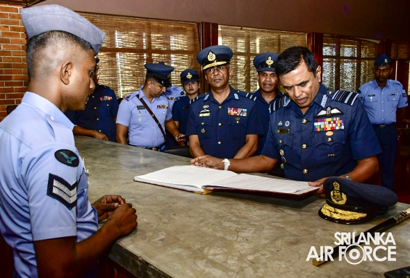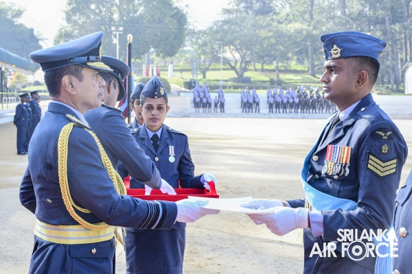 At the entrance to the School, the Commander of the Air Force was received with a horse cavalcade representing the historical links of ‘Stable Hill camp’. The Commander reviewed the Commander’s Inspection Parade, commanded by the Commanding Officer of SLAF Combat Training School Diyatalawa Air Commodore Vajira Senadheera. Thereafter, the certificates of commendation were awarded to the following service personnel in recognition of their meritorious contributions to the School in particular and to the Air Force in general.