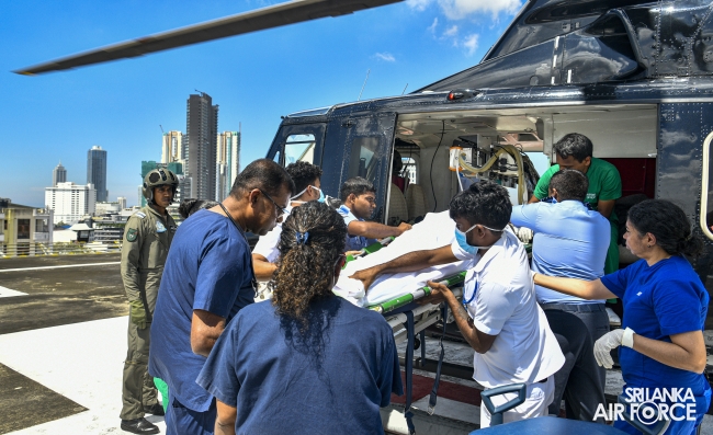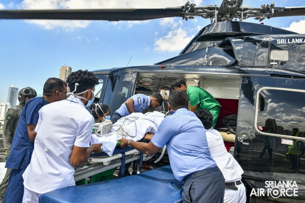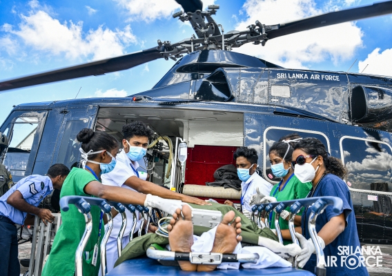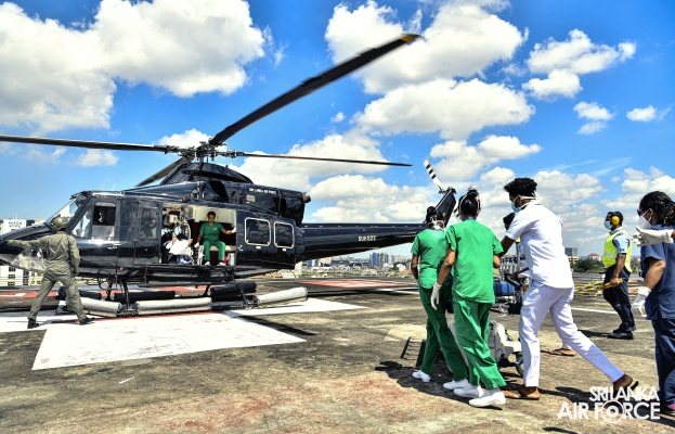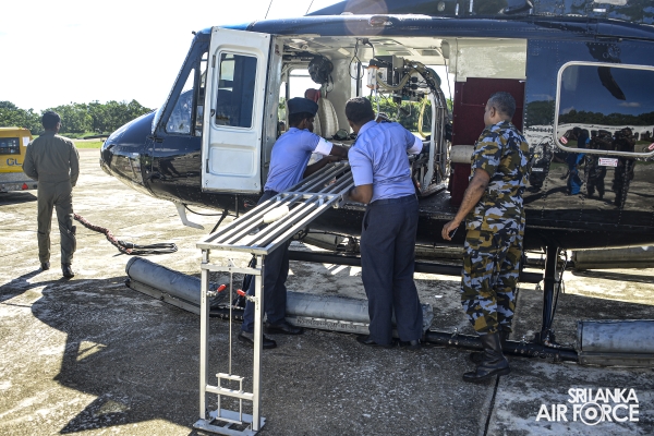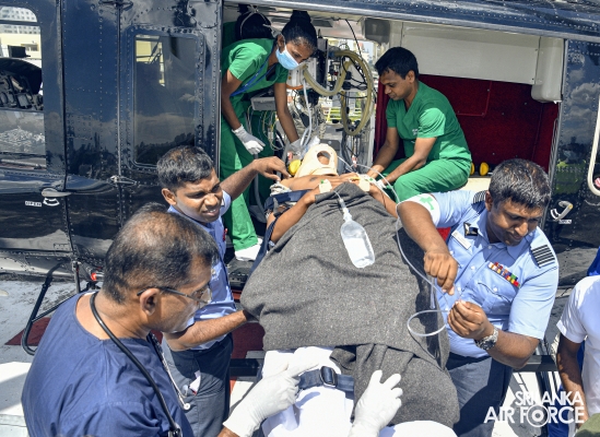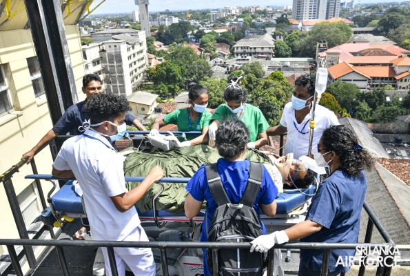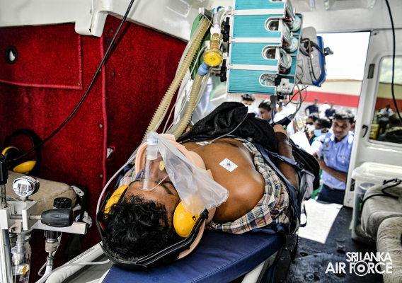 This exercise demonstrated the patient handing over and taking over procedure and steps in an Aero Medical Evacuation and Transportation. The Bell 412 with the Medivac Kit from the No. 4 Squadron has used for this exercise. The simulation flight with a patient was taken off from SLAF Base Anuradhapura and landed on the Helipad of the National Hospital Sri Lanka. The team comprised with SLAF Aviation Medivac teams and Doctors and Intensive teams of the National Hospital Colombo.