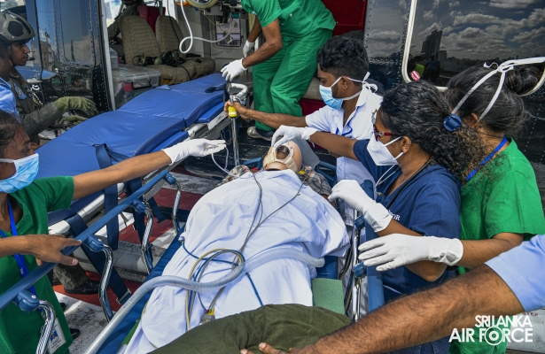 The Directorate of Health Services successfully conducted a simulation exercise of an Aero Medical Evacuation and Transportation (AMET) of a critically ill patient in collaboration with the Trauma secretariat of the National Hospital Sri Lanka today (08 November 2023) at SLAF Base Anurahapura. This simulation exercise was an extended learning exposition to the lecture series conducted for the Consultants and Medical officers from the Ministry of Health, earlier this month by the SLAF Aviation Medical team.