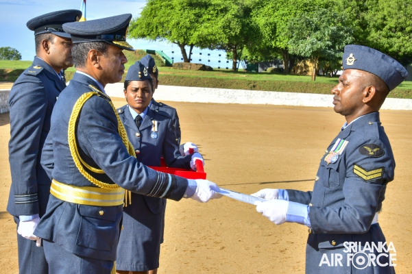 Commanding Officer of SLAF Station Weerawila, Group Captain Suresh Jayasinghe received the Commander on his arrival and a Street Line was accorded to the Commander. The Commander reviewed the Commander’s Inspection Parade, and the certificate of commendation was awarded to the following service person in recognition of his meritorious contribution to the Station and to the Air Force.