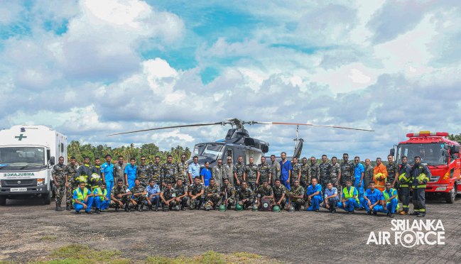 The multifaceted mission exercise, comprising calibration of the Airborne Tracking and Monitoring Device developed by the Aeronautical Research and Development Wing at SLAF Station Katukurunda, two CASEVAC missions, confined area landing and manoeuvring, three helipad air reconnaissance missions, a ground reconnaissance mission for the Disaster Assistance Response Team (DART), a pilot incapacitation simulation and dry rehearsals on manoeuvring with helicopters for the DART crew, Fire crew and Medical crew of both Station and General Hospital Kaluthara, was successfully brought off, enhancing the skills of personnel involved whilst providing exposure to real-time experience in a disastrous situation.