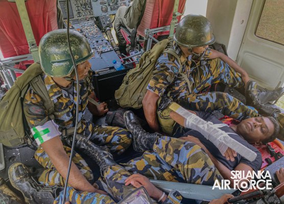 The overall exercise manifested a higher degree of preparedness, operational responsiveness and professionalism of the respective SLAF elements in executing meticulous procedures in the course of mobilizing in response to a disaster. The Bell 412, manned by a qualified aircrew from the No. 4 Squadron, played a vital role in executing the simulation, showcasing its agility in manoeuvring over confined areas. The exercise was comprised of members of the Medical teams from SLAF Station Katukurunda and SLAF Base Ratmalana, intensive care teams of Kaluthara General Hospital, DART, Fire and the supporting element from Station Katukurunda.