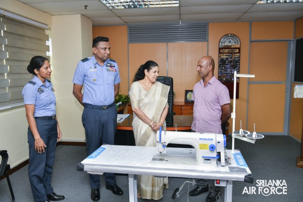 A Juki sewing machine valued at Rs. 75,000 was presented to the civil employee of the Air Force, Mr. S.M. Ajith Senevirathne, fulfilling his request and aiming to provide financial stability for his family. The generous monetary contribution to acquire this machine was made by the benevolent well-wishers, Mr. Nilakshan Perera and Mrs. Rasadari Perera.