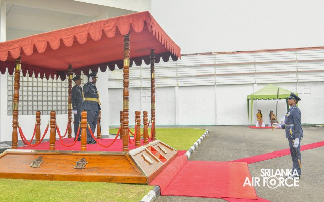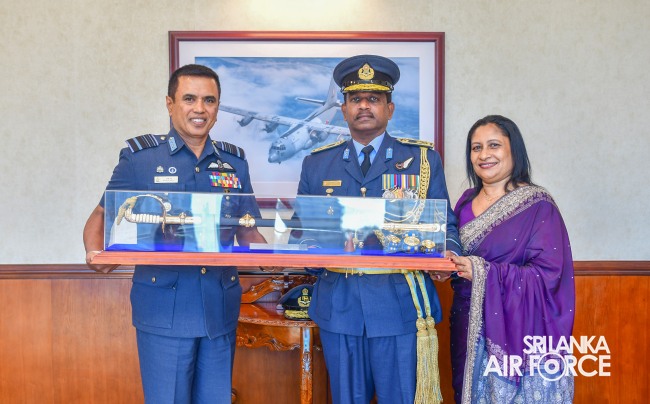 Air Vice Marshal Thilakasinghe made an official farewell call on the Commander of the Air Force, Air Marshal Udeni Rajapaksa, at his office on the 09 November 2023. The Commander commended him for his dedicated long years of service rendered to the nation and to the Sri Lanka Air Force in particular. The Commander also emphasized that he was one of the key stakeholders during the time of need of our motherland and that his illustrious career will remain etched in the annals of the SLAF. The Commander and Air Vice Marshal Thilakasinghe exchanged mementoes to mark the occasion. He was accorded a Ceremonial Guard of Honour by the SLAF Colour Wing on 17 November 2023 before he departed from Air Force Headquarters for the last time.