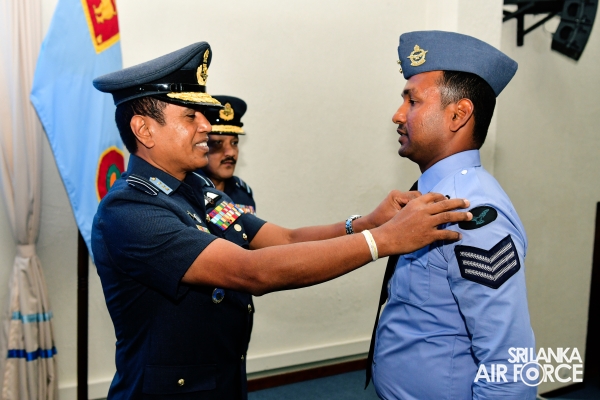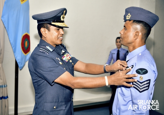 The Awarding Ceremony of Air Crew Qualification Insignia was held today (30 November 2023) at Air Force Headquarters, where the Commander of the Air Force, Air Marshal Udeni Rajapaksa, graced the event as the chief guest. Accordingly, Load Master Brevets were awarded to the individuals who qualified for the respective training courses.