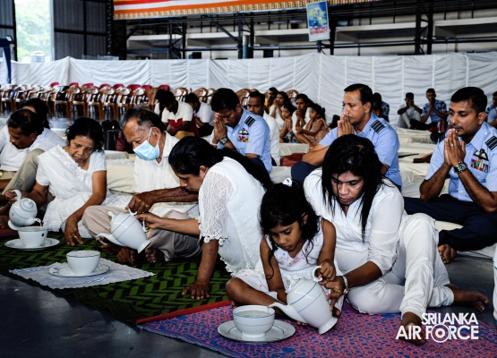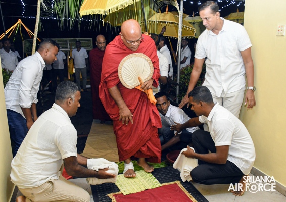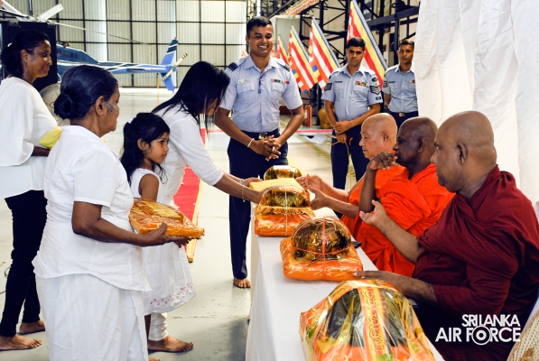 The annual all-night pirith chanting ceremony was held at No.9 Attack Helicopter Squadron at SLAF Base Hingurakgoda on 28 November 2023 as a combined effort of both members of No.9 Squadron and No.7 Squadron, in line with both squadrons’ war heroes commemoration 2023. Further, all the sections of SLAF Base Hingurakgoda assisted in numerous ways for the event.