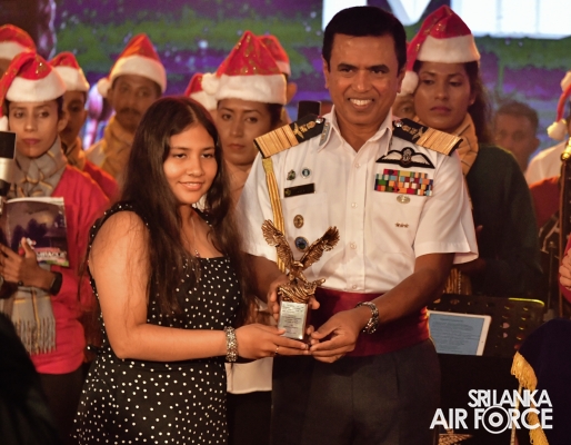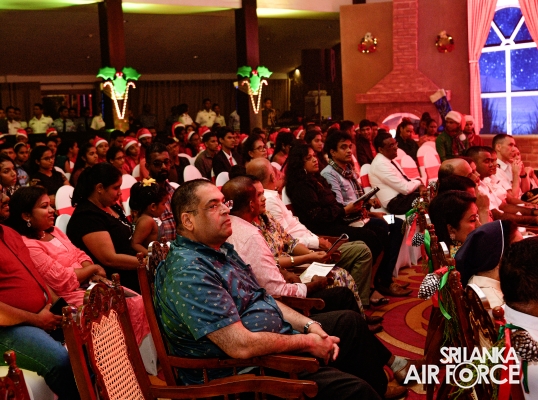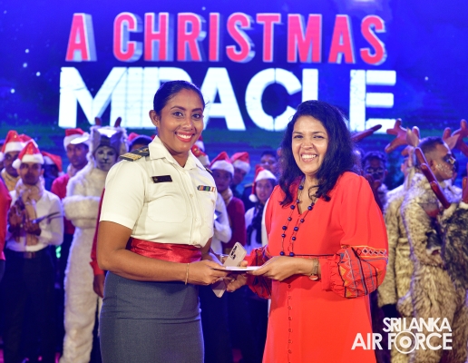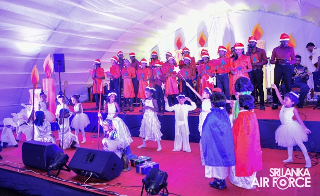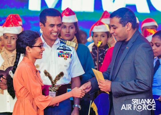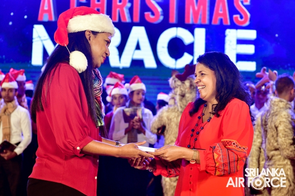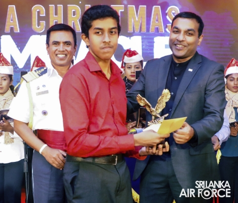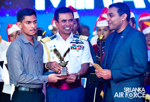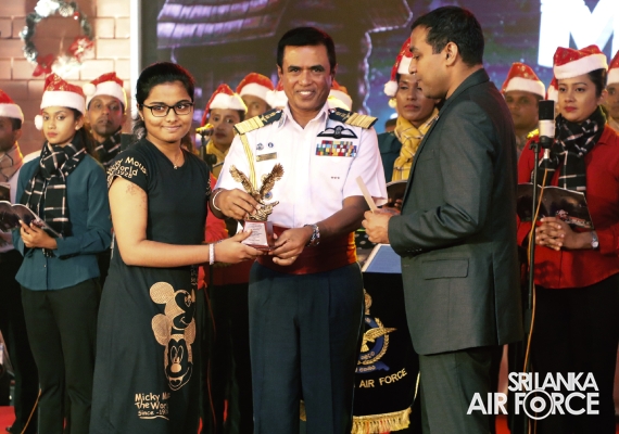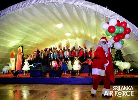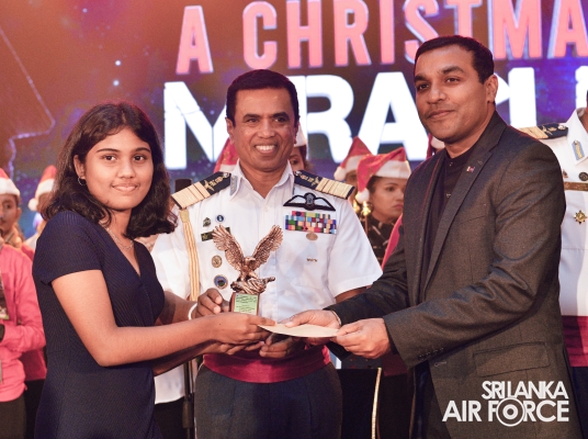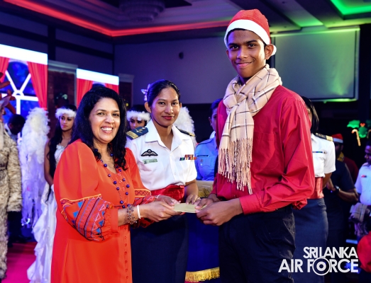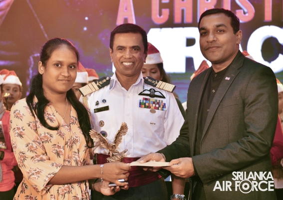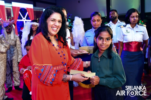 The Chief Guest was cordially welcomed at the entrance of Eagles’ Lagoon View by Mrs. Enoka Rajapaksa and Air Marshal Udeni Rajapaksa. The evening unfolded within a serene Christmas atmosphere meticulously created for the occasion. This year the Air Force Choir under the supervision of the Director Performing Arts, Group Captain Jayaratne Amarasinghe was made up of members of the Directorate of Performing Arts, children of Air Force service personnel and also serving members together with their spouses. Squadron Leader Gayan Joseph was at the helm as the Choir Master. The event was hosted by Squadron Leaders Radhika Ranaweera and Squadron Leader Lilangi Randeni and the SLAF Dancing Troupe created the magic of Christmas by performing the colorful nativity scenes. The ceremony also included the recognition of 14 school children of serving members who achieved exceptional results, obtaining 9 ‘A’s in the GCE Ordinary Level Examination. The State Minister of Defence recognized their academic accomplishments during the event.