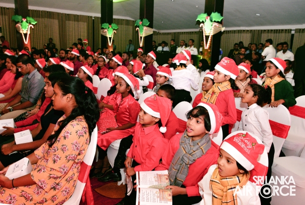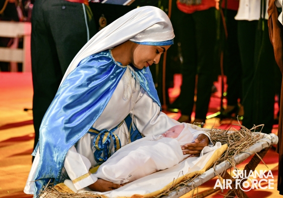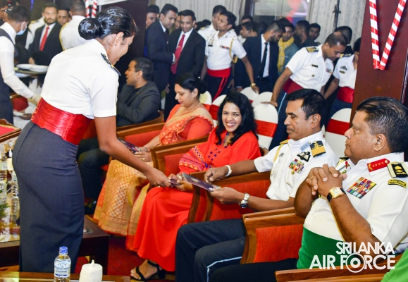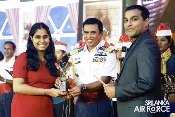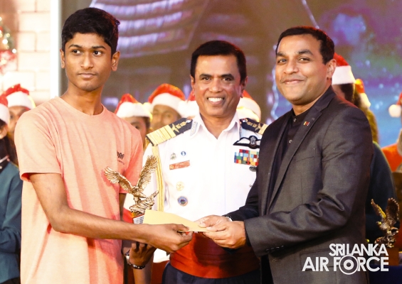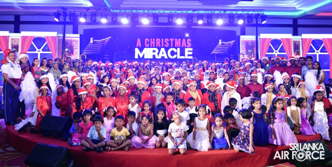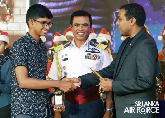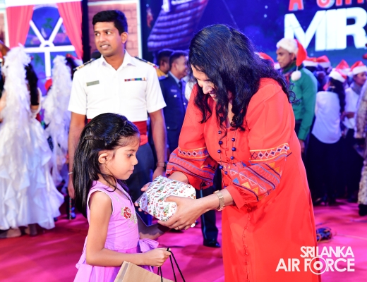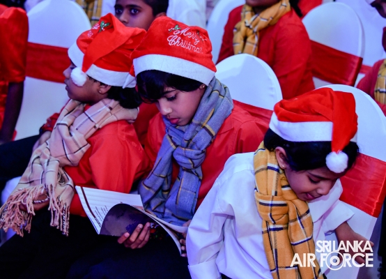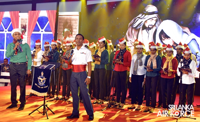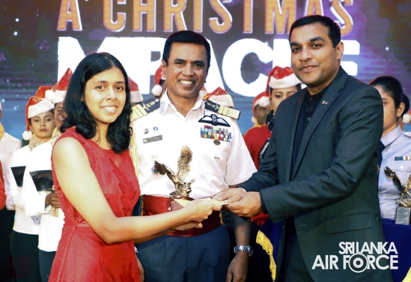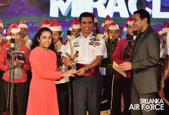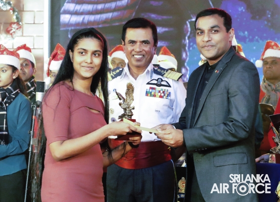 The Chief Guest was cordially welcomed at the entrance of Eagles’ Lagoon View by Mrs. Enoka Rajapaksa and Air Marshal Udeni Rajapaksa. The evening unfolded within a serene Christmas atmosphere meticulously created for the occasion. This year the Air Force Choir under the supervision of the Director Performing Arts, Group Captain Jayaratne Amarasinghe was made up of members of the Directorate of Performing Arts, children of Air Force service personnel and also serving members together with their spouses. Squadron Leader Gayan Joseph was at the helm as the Choir Master. The event was hosted by Squadron Leaders Radhika Ranaweera and Squadron Leader Lilangi Randeni and the SLAF Dancing Troupe created the magic of Christmas by performing the colorful nativity scenes. The ceremony also included the recognition of 14 school children of serving members who achieved exceptional results, obtaining 9 ‘A’s in the GCE Ordinary Level Examination. The State Minister of Defence recognized their academic accomplishments during the event.