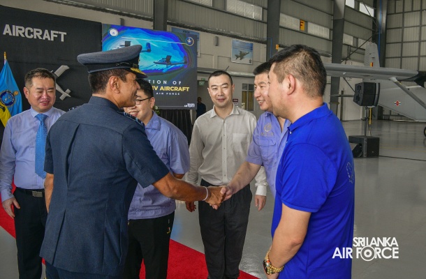 The formal proceedings commenced with the signing of documents symbolizing the transfer of the Harbin Y-12 aircraft to the Sri Lanka Air Force. Commander of the Air Force, Air Marshal Udeni Rajapaksa and Mr. Den Ling from China National Aero Technology Import & Export Cooperation presided over this key moment, marking the official handover.