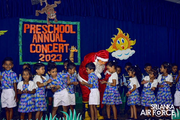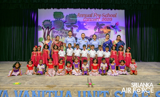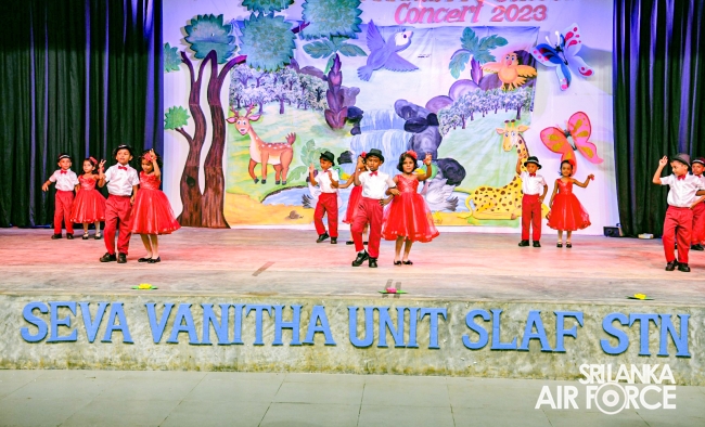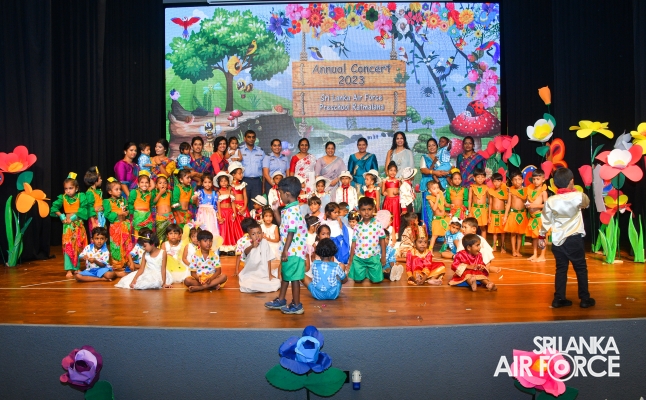 The Annual Pre-School Concert of Sri Lanka Air Force Station Colombo was held yesterday (06 December 2023). The Chairperson of the SLAF Seva Vanitha Unit, Mrs. Enoka Rajapaksa graced the occasion as the Chief Guest. Seva Vanitha committee members, Senior members of the SLAF Seva Vanitha Unit, , Commanding Officer SLAF Station Colombo, Air Commodore HWR Chandima, Officers of SLAF Station Colombo and parents of the children participated for the event.