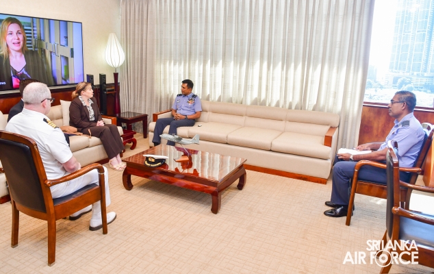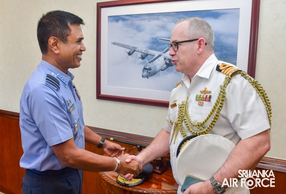A three-member delegation from the High Commission of Australia in Sri Lanka, comprising Defence Advisor, Captain Ian Cain, Assistant Secretary Regional, Ms. Shan Strugnell and Mr. Joseph Byrne, visited the Commander of the Air Force, Air Marshal Udeni Rajapaksa, at Air Force Headquarters today (07 December 2023).