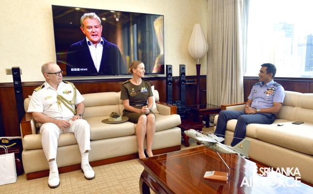 The outgoing Defence Advisor to the Australian High Commission in Sri Lanka, Captain Ian Cain, paid his farewell visit to the Commander of the Air Force, Air Marshal Udeni Rajapaksa, at Air Force Headquarters today (15 December 2023). Concurrently, the newly appointed Defence Advisor, Colonel Amanda Jhonston, also made her customary call on the Commander.