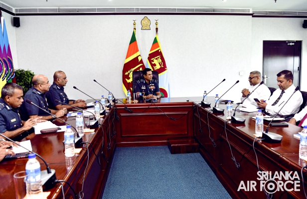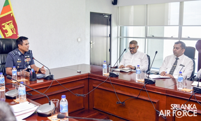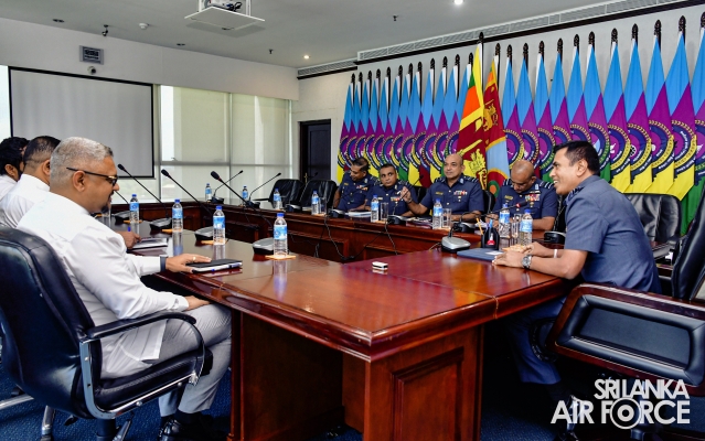 During their visit, the delegation engaged in cordial discussions with the SLAF Commander, addressing technological advancements crucial for ensuring national security, particularly within the Sri Lankan airspace. The objective was to facilitate technical collaboration between the Air Force and government stakeholders in the technical fields, aiming to enhance synergy in research and development as well as funding. Additionally, the delegation explored potential field visits to available engineering facilities. Key personnel, including the Director General Air Operations, the Director General Aeronautical Engineering, the Director Information Technology and the Staff Officer to the Commander handling technical matters, participated in these discussions. Following the constructive discussions, the Air Force Commander presented a memento to the State Minister to mark the occasion.