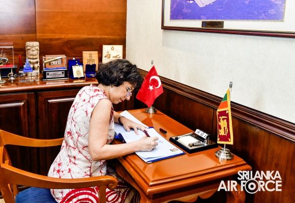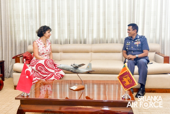 The Ambassador of Turkey, Her Excellency R. Demet Sekercioglu called on the Commander of the Air Force, Air Marshal Udeni Rajapaksa, at the Air Force Headquarters today (19 December 2023).