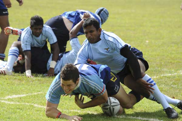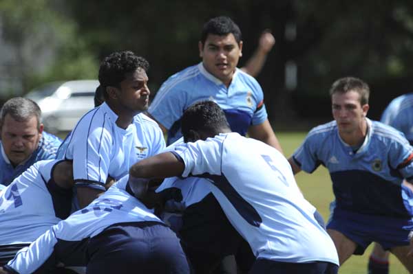 The SLAF had its first encounter with the Royal New Zealand Navy which emerged as the Defence Services Champions last year, at Davenport Naval Base. Having observed a two minutes silence in memory of those who died in the earthquake in Christchurch a day before, the national anthems of the two countries were played. Just before the game started, the traditional HAKA was performed by the NZ Navy players. Even though the SLAF team was at a great disadvantage in terms of height, size and weight, the SLAF players commenced attacking from the very outset and outperformed the fast-running line and much heavier pack of RNZN. To the surprise of many New Zealanders,the SLAF won the game by 07 points-36 to 29. (SLAF: 04 Goals, 01 try and 01 penalty; RNZ Navy: 02 goals and 03 tries). While all SLAF players performed creditably well, the performances of the following