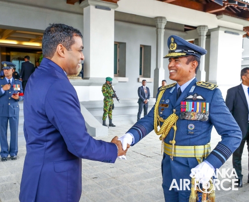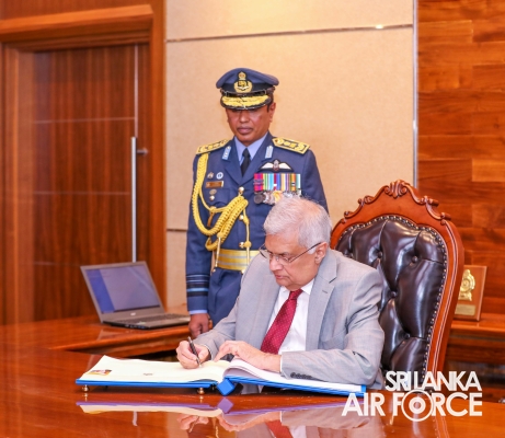 Adding symbolic significance to the day’s landmark event, the President inaugurated the office of the Commander of the Air Force at the new Air Force HQ. A brief discussion ensued in the Commander’s new office, graced by the President, along with the State Minister of Defence, National Security Advisor, Secretary to the Ministry of Defence and Chief of Defence Staff.