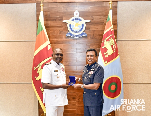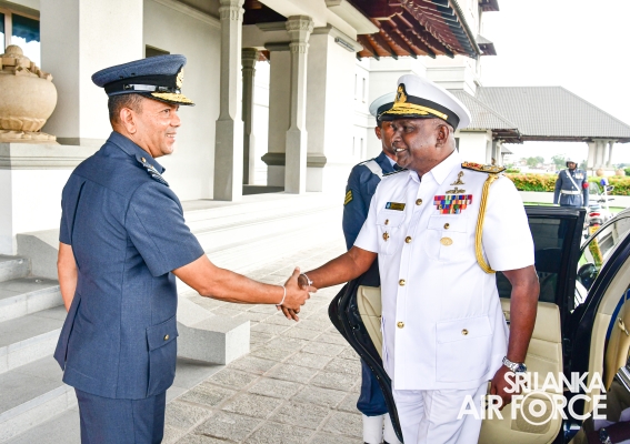 The Chief of Staff of the Sri Lanka Navy, Rear Admiral K.J Kularatne paid his farewell call on the Commander of the Air Force, Air Marshal Udeni Rajapaksa yesterday (09 January 2024) at Air Force Headquarters, prior to his retirement from the SL Navy.