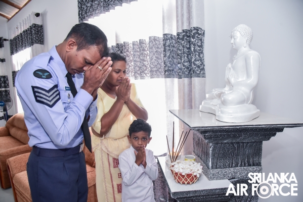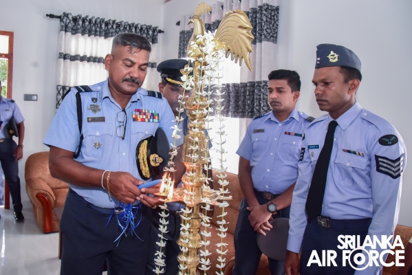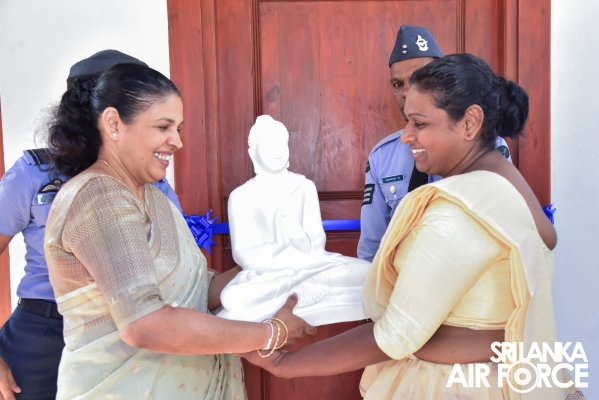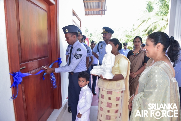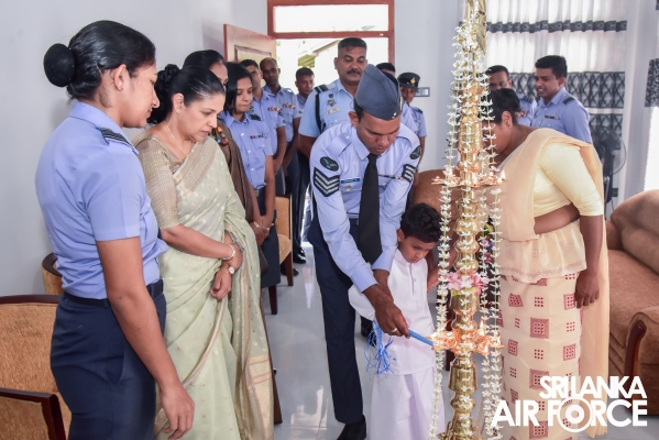 A house constructed by the SLAF Seva Vanitha Unit was handed over to Sergeant Dissanayaka GH – (Air Radio) today (11 January 2024) and the housewarming ceremony was held at Katana. The Chairperson of the SLAF Seva Vanitha Unit, Mrs. Enoka Rajapaksa, graced this occasion as the chief guest.