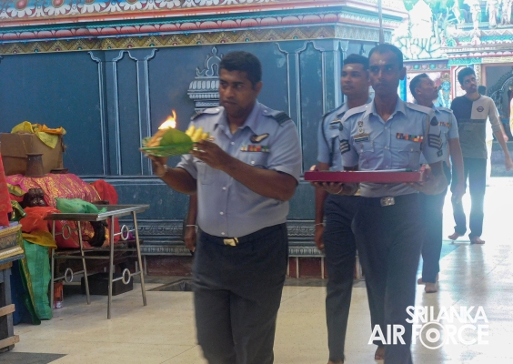 The celebration commenced with the customary working parade and it was commanded by the Chief Instructor Squadron Leader NGK Dayakumara. The parade was reviewed by the Commanding Officer, Group Captain RND Senadheera. Further, flag blessing was conducted at ‘Sri Bodhirajaramaya' temple in China Bay and also at ‘Koneshwaram Kovil’.