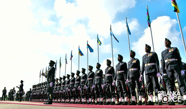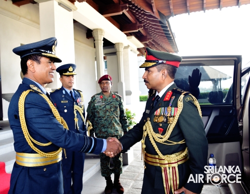 Lieutenant General Latheef was received by the Commander of the Air Force and the Guard of Honour was conferred by the No. 43 Colour Wing of the SLAF.
