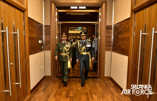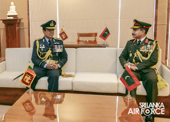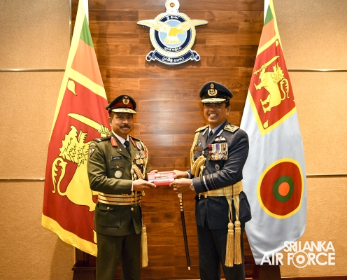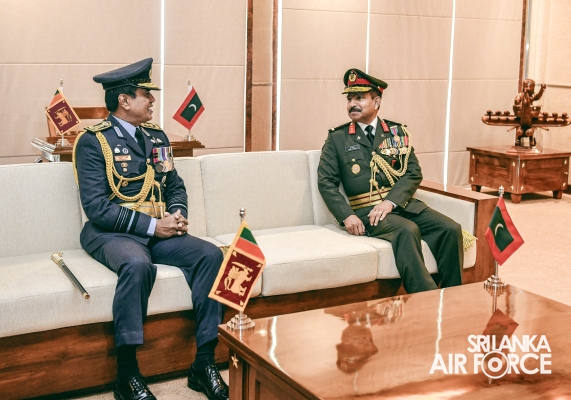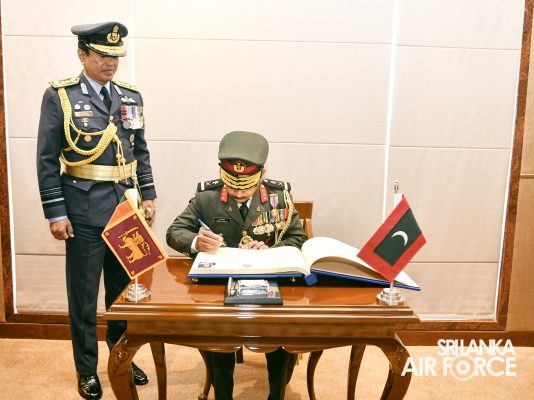 Following the customary proceedings, Air Marshal Rajapaksa and Lieutenant General Latheef discussed bilateral matters of mutual interest, such as strengthening defence cooperation and enhancing training opportunities. The official plaques were exchanged between the two Chiefs at the Commander’s Office after the cordial discussions.