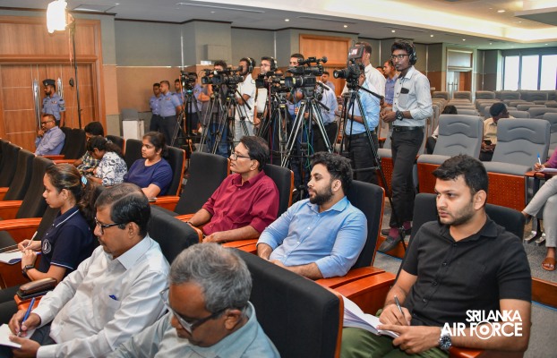 The press briefing for the "73rd Air Force Anniversary" celebration and "Air Tattoo and Exhibition-2024" was held today (14 February 2024), chaired by the Commander of the Air Force, Air Marshal Udeni Rajapaksa at the Air Force Headquarters in Sri Jayewardenepura.