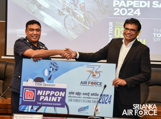 Before the conclusion of press briefing, the sponsorship cheques and official letters were handed over to the Chairman SLAF Cycling, Air Vice Marshal Lasitha Sumanaweera respectively by General Manager Nippon Paint Lanka (Pvt) Ltd, Mr. Nemantha Abeysinghe, General Manager Abans Group of Company, Mr. Laleendra Brahmana, Category Head of Maliban Biscuit Manufactories Private Limited, Mr. Poshitha Perera, Head of National Sales People’s Insurance PLC, Mr. Danushka Hettiarachchi, Assistant General Manager Cooperate Banking of People’s Bank, Mrs. Thushari Hewawasam and Key Customer Executive of Wijaya Products Pvt. Ltd, Mr. Janith Karavita.