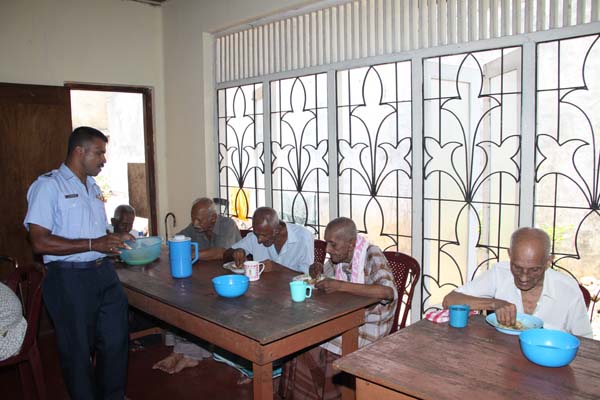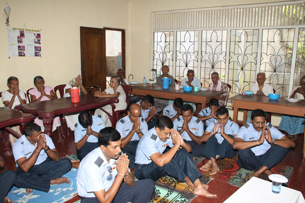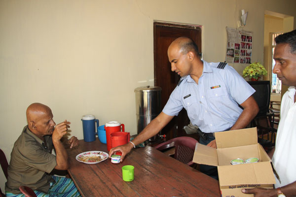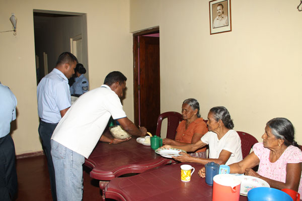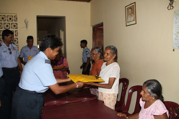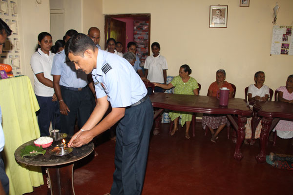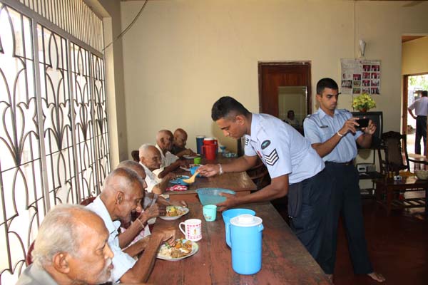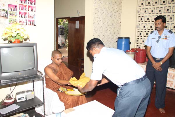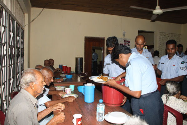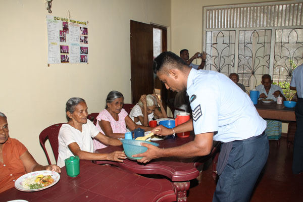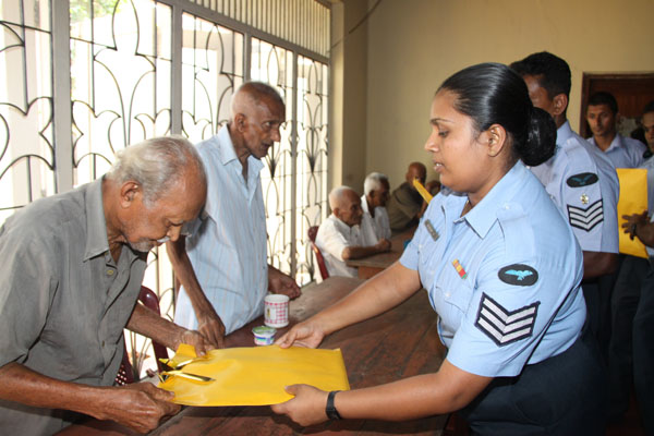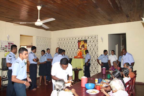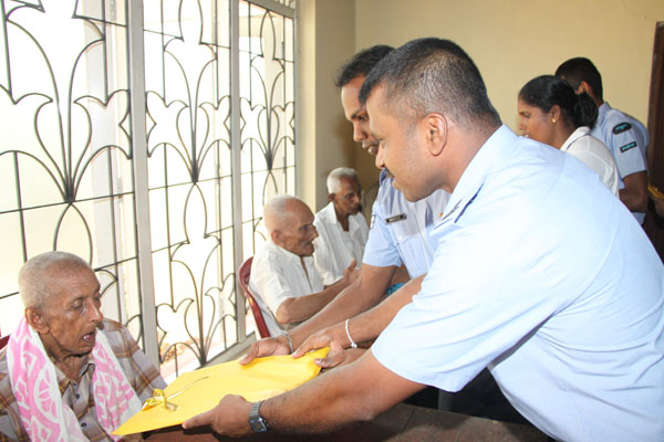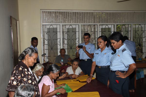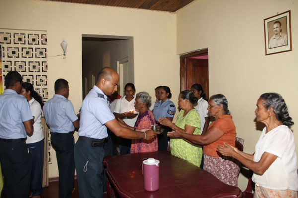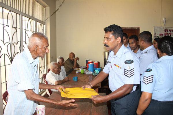 Religious activities were followed by an alms giving for the elders residing at the “Mawupiya Sevana” Elders’ Care Home, Maharagama. The elders were also presented with items of clothing by the SLAF personnel of the Command Procurement Division.