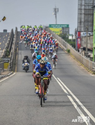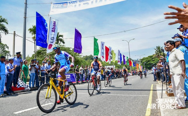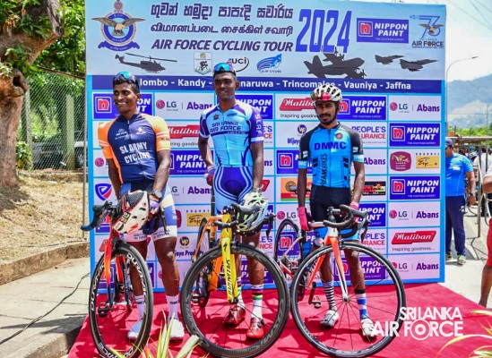 The First leg of the 25th Guwan Hamuda Papedi Sawariya ended at Kandy today (03 March 2024) having covered a distance of 104.3km. Sri Lanka Air Force Cyclist, Nadeesha Eshan won the 1st leg of the race while Sandaruwan Pinto from Sri Lanka Army and Rovindu Namuditha Soyza of Dehiwala-Mount Lavinia Municipal Council finished as second and third places respectively.